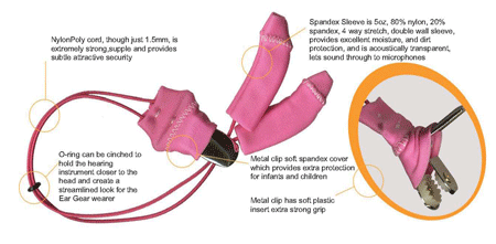 Ear Gear is an effective means of protecting your child's hearing aids from dirt, sweat and accidental loss.