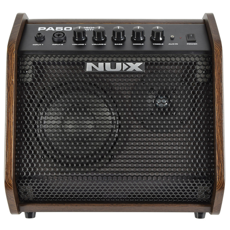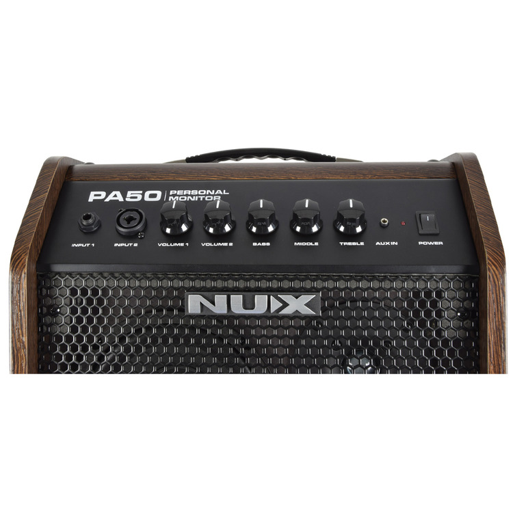The NuX PA-50 personal monitoring amplifier has a flat frequency response and is equipped with a full range 2-way speaker set. 2 independent channels each have a different EQ response.