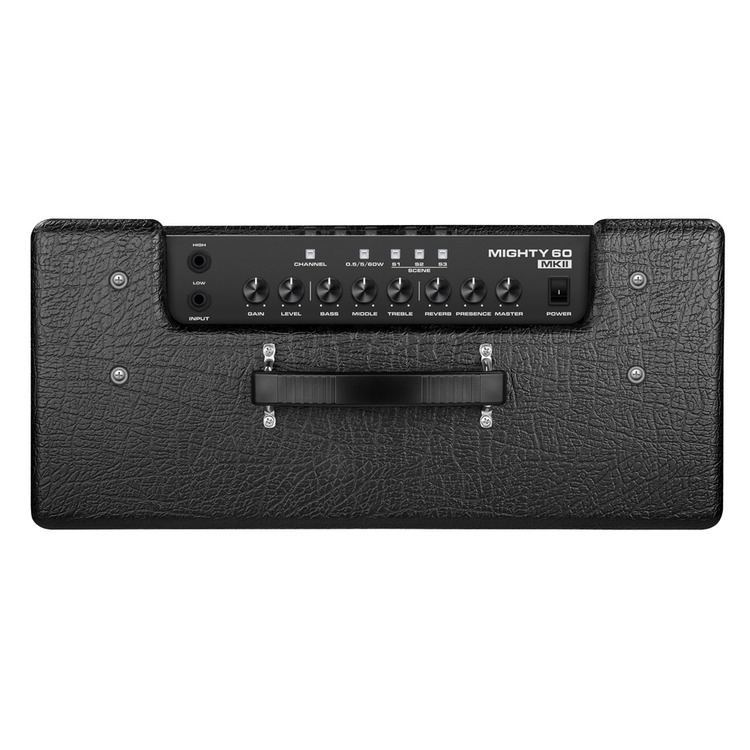 There are 7 internal user editable presets which have 3 pro scenes each, giving a total of 21 accessible sounds via the top panel or footswitch. Amplification is taken care of by an internal 60W power amplifier, which can be switched to 5W or even 0.5W for lower playing levels during practice or recording. USB connection at the rear acts as a PC/Mac interface for recording & playback, firmware updates and even editing internal sounds on your laptop using the downloadable Mighty Editor software.