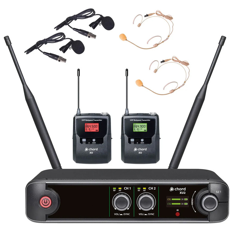 Chord XU2 Dual Channel Bodypack with Neckworn & Lapel Microphone UHF Radio Microphone System