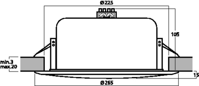 | Mounting cutout | diameter 225 mm x height 110 mm |