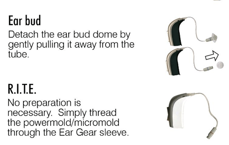 Alternatively, it is possible to use Ear Gear in reverse which allows a hearing instrument to have Ear Gear installed without having to remove the earmould/earbud: